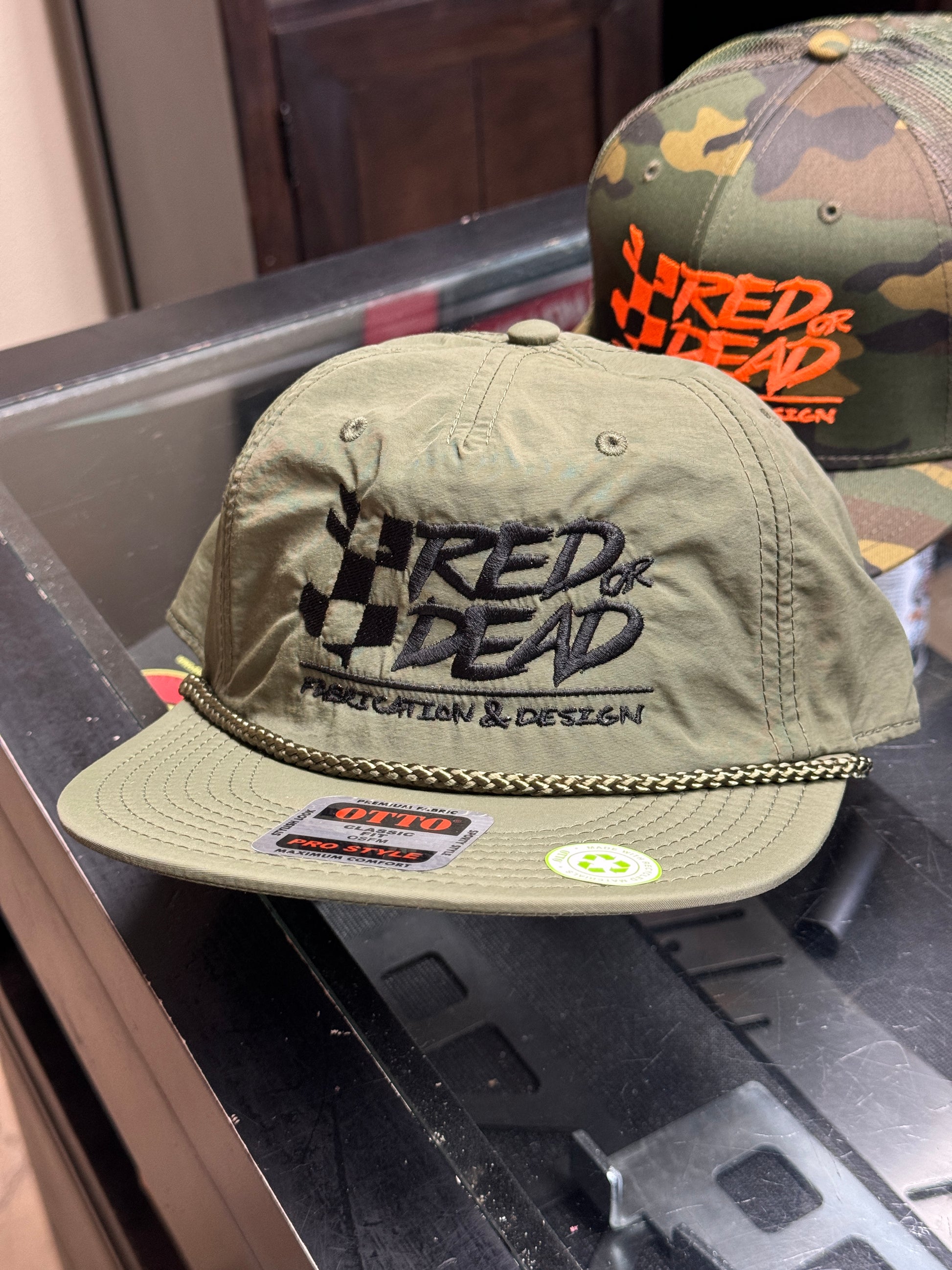Embroidered on an OTTO 148-1267 Snap back and 141-1070 Mesh snap back.
